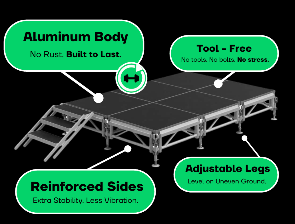 Explore how our portable stage system is built for quick setup and long-lasting performance.